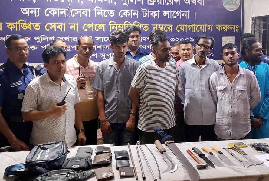 গ্রেপ্তাররা হলেন মো. অন্তু (২৩), মো. সিয়াম (২১), আপন (২৩) এবং মো. মিজানুর রহমান ওরফে শাওন (৪১), জাহিদ হাসান লেলিন (৩৭) ও মো. জিয়াউর রহমান ওরফে রাইয়ান (৪০)।