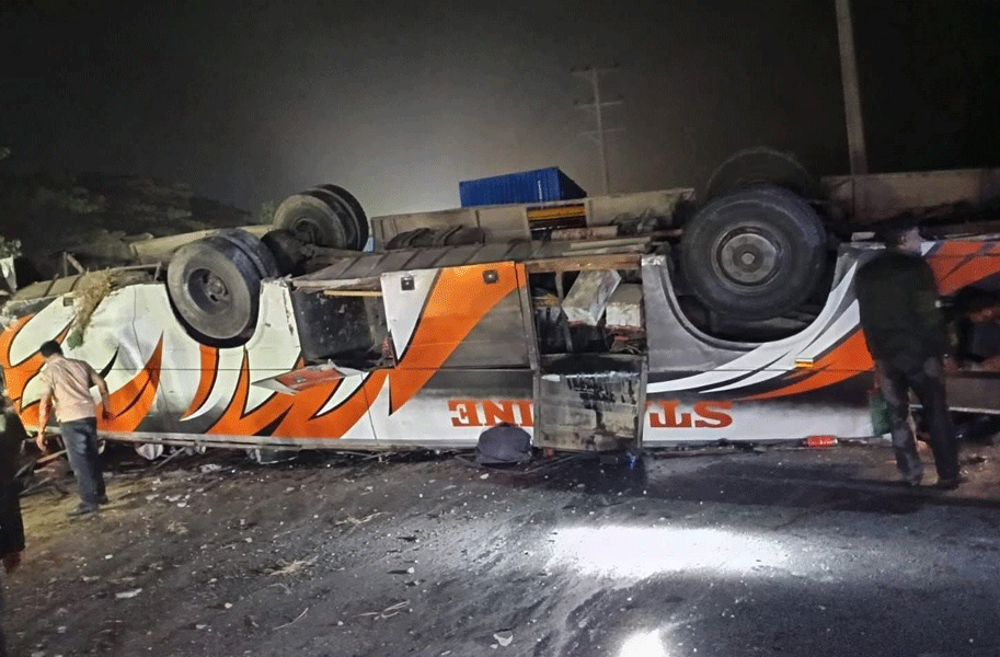 যাত্রীবাহী বাস উল্টে নিহত ২, আহত ১৫